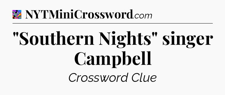 This page will help you find the correct answer to the ‘”Southern Nights” singer Campbell’ clue from Crosswords With Friends. If you’re stuck, simply scroll down to see the solution. We also provide extra answers, helpful hints, and tips to make solving Crosswords With Friends easier and more enjoyable. Use this resource anytime you need quick assistance with tough clues!