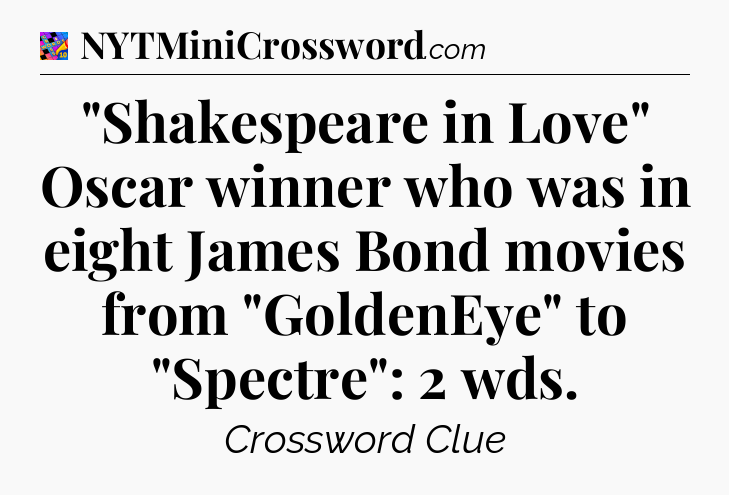 The clue “”Shakespeare in Love” Oscar winner who was in eight James Bond movies from “GoldenEye” to “Spectre”: 2 wds” most recently appeared in a Crosswords With Friends on September 2, 2024.