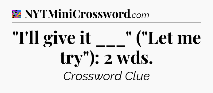 The clue “”I’ll give it ___” (“Let me try”): 2 wds” most recently appeared in a Crosswords With Friends on September 2, 2025.
