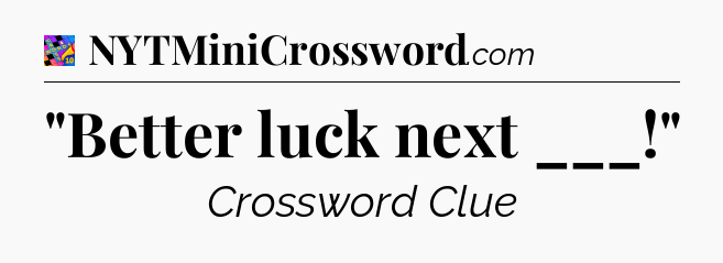 This page will help you find the correct answer to the ‘”Better luck next ___!”‘ clue from Crosswords With Friends. If you’re stuck, simply scroll down to see the solution. We also provide extra answers, helpful hints, and tips to make solving Crosswords With Friends easier and more enjoyable. Use this resource anytime you need quick assistance with tough clues!