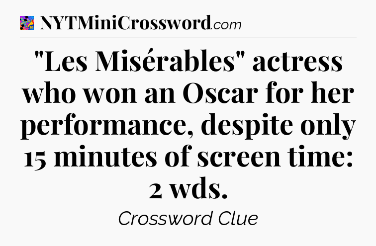 There is 1 possible answer for the crossword clue “”Les Misérables” actress who won an Oscar for her performance, despite only 15 minutes of screen time: 2 wds”.