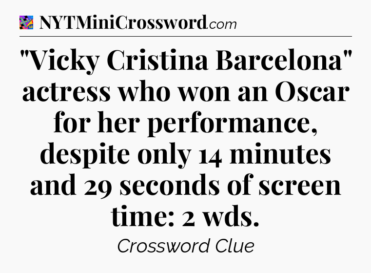 The Answer for “Vicky Cristina Barcelona” actress who won an Oscar for her performance, despite only 14 minutes and 29 seconds of screen time: 2 wds Crossword is: