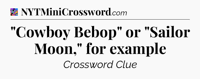 This page will help you find the correct answer to the ‘”Cowboy Bebop” or “Sailor Moon,” for example’ clue from Crosswords With Friends. If you’re stuck, simply scroll down to see the solution. We also provide extra answers, helpful hints, and tips to make solving Crosswords With Friends easier and more enjoyable. Use this resource anytime you need quick assistance with tough clues!