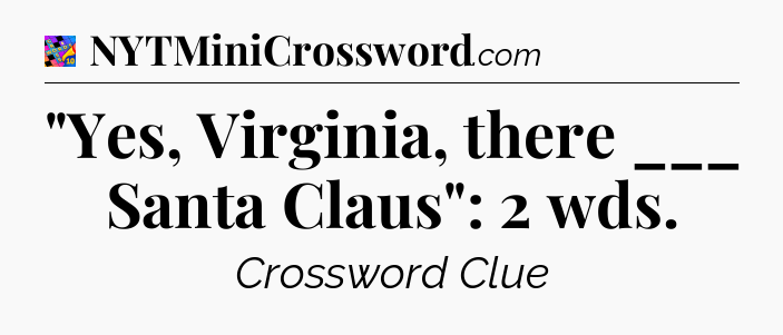 This page will help you find the correct answer to the ‘”Yes, Virginia, there ___ Santa Claus”: 2 wds’ clue from Crosswords With Friends. If you’re stuck, simply scroll down to see the solution. We also provide extra answers, helpful hints, and tips to make solving Crosswords With Friends easier and more enjoyable. Use this resource anytime you need quick assistance with tough clues!
