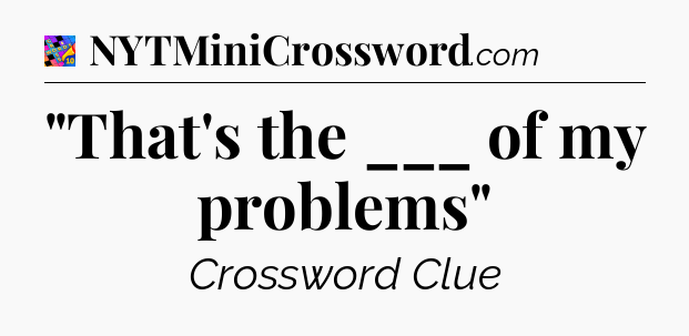 This page will help you find the correct answer to the ‘”That’s the ___ of my problems”‘ clue from Crosswords With Friends. If you’re stuck, simply scroll down to see the solution. We also provide extra answers, helpful hints, and tips to make solving Crosswords With Friends easier and more enjoyable. Use this resource anytime you need quick assistance with tough clues!