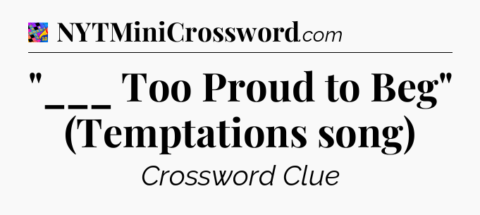 This page will help you find the correct answer to the ‘”___ Too Proud to Beg” (Temptations song)’ clue from Crosswords With Friends. If you’re stuck, simply scroll down to see the solution. We also provide extra answers, helpful hints, and tips to make solving Crosswords With Friends easier and more enjoyable. Use this resource anytime you need quick assistance with tough clues!