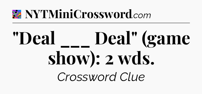 The clue “”Deal ___ Deal” (game show): 2 wds” most recently appeared in a Crosswords With Friends on September 7, 2025.
