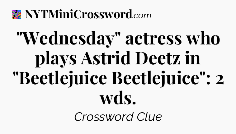 The clue “”Wednesday” actress who plays Astrid Deetz in “Beetlejuice Beetlejuice”: 2 wds” most recently appeared in a Crosswords With Friends on September 9, 2024.