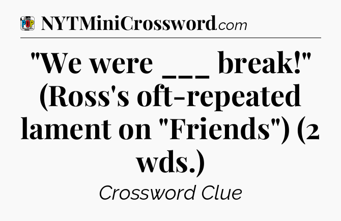 The Answer for “We were ___ break!” (Ross’s oft-repeated lament on “Friends”) (2 wds.) Crossword Clue is: