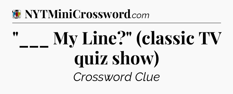 The Answer for “___ My Line?” (classic TV quiz show) Crossword Clue is: