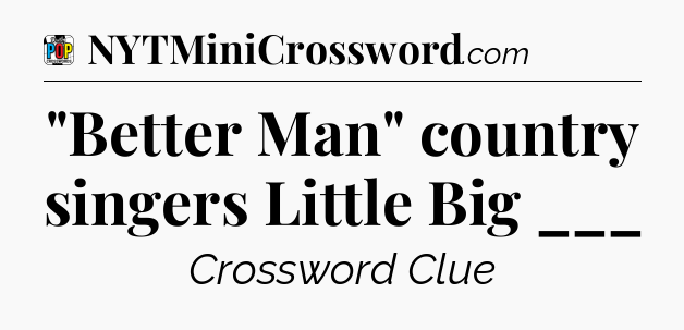 Many people are looking for this kind of information, because they want to pass each level. Especially for this we guessed Daily Pop Crossword “Better Man” country singers Little Big ___ answers for you and placed on this website.