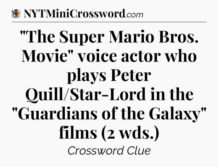 The clue “”The Super Mario Bros. Movie” voice actor who plays Peter Quill/Star-Lord in the “Guardians of the Galaxy” films (2 wds.)” most recently appeared in a Daily Pop Crossword on January 3, 2025.