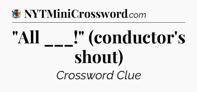 The Answer for “All ___!” (conductor’s shout) Crossword Clue is:
