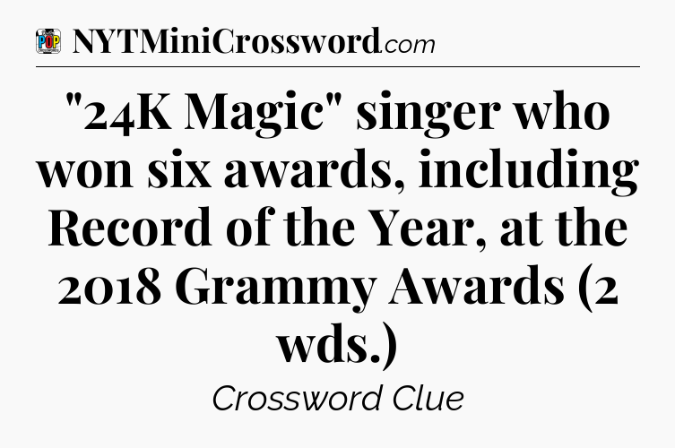 The Answer for “24K Magic” singer who won six awards, including Record of the Year, at the 2018 Grammy Awards (2 wds.) Crossword Clue is: