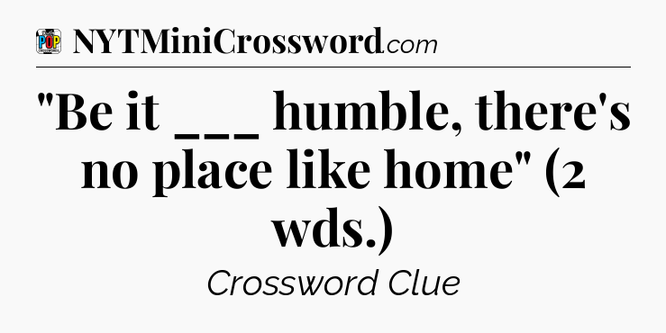 Many people are looking for this kind of information, because they want to pass each level. Especially for this we guessed Daily Pop Crossword “Be it ___ humble, there’s no place like home” (2 wds.) answers for you and placed on this website.