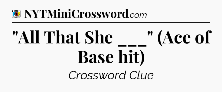Many people are looking for this kind of information, because they want to pass each level. Especially for this we guessed Daily Pop Crossword “All That She ___” (Ace of Base hit) answers for you and placed on this website.