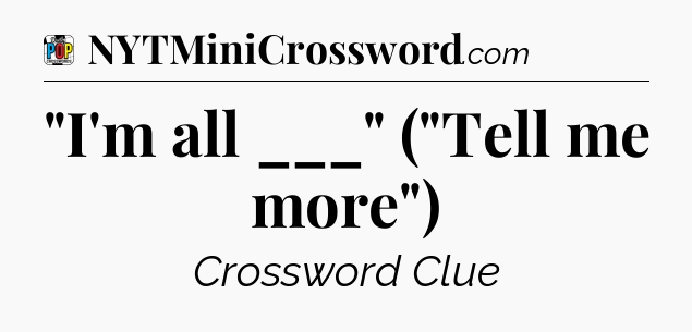 The Answer for “I’m all ___” (“Tell me more”) Crossword Clue is: