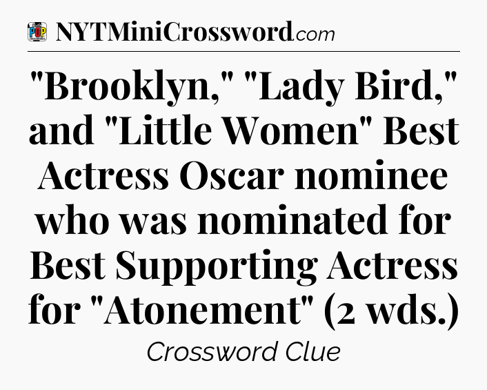 The clue “”Brooklyn,” “Lady Bird,” and “Little Women” Best Actress Oscar nominee who was nominated for Best Supporting Actress for “Atonement” (2 wds.)” most recently appeared in a Daily Pop Crossword on October 10, 2025.
