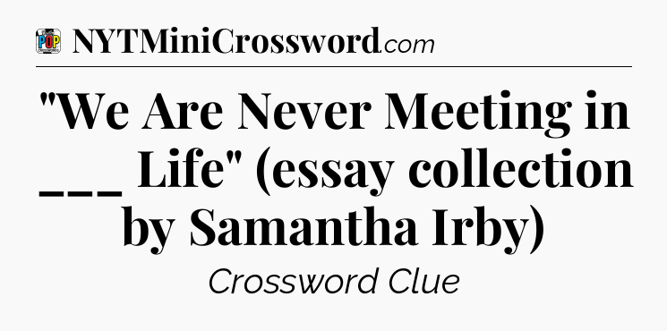 Many people are looking for this kind of information, because they want to pass each level. Especially for this we guessed Daily Pop Crossword “We Are Never Meeting in ___ Life” (essay collection by Samantha Irby) answers for you and placed on this website.