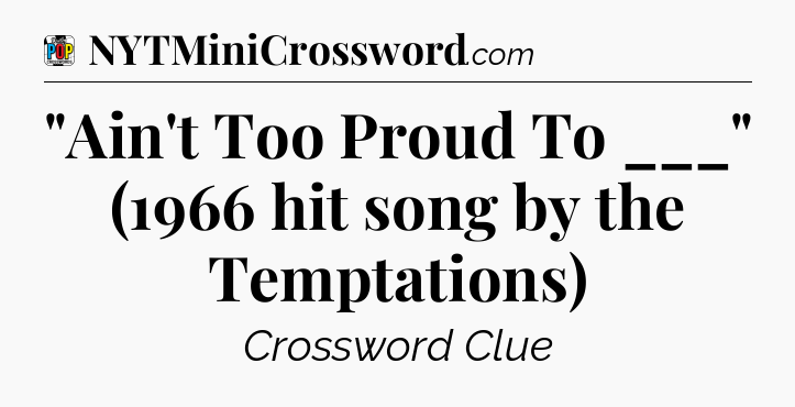 The Answer for “Ain’t Too Proud To ___” (1966 hit song by the Temptations) Crossword Clue is:
