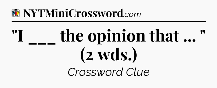 The Answer for “I ___ the opinion that … ” (2 wds.) Crossword Clue is: