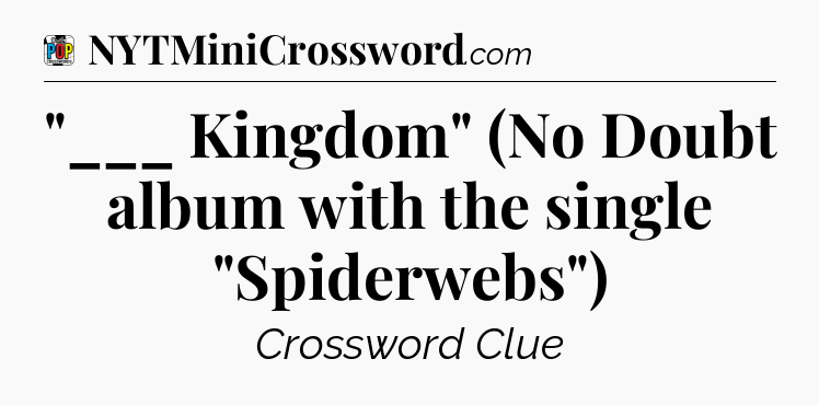 Many people are looking for this kind of information, because they want to pass each level. Especially for this we guessed Daily Pop Crossword “___ Kingdom” (No Doubt album with the single “Spiderwebs”) answers for you and placed on this website.