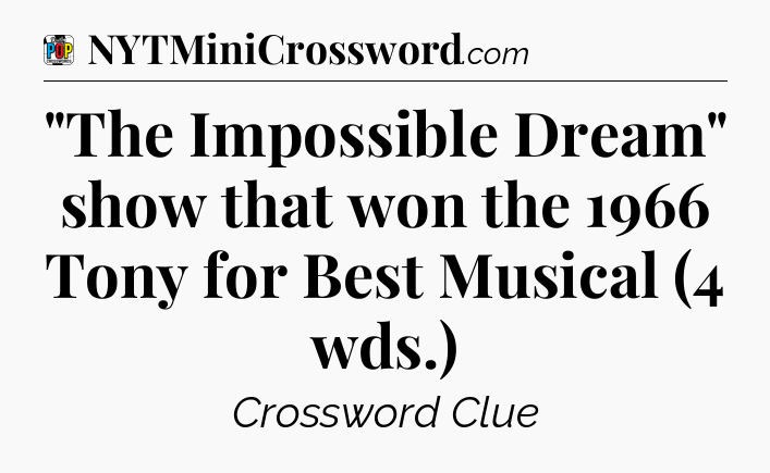 The Answer for “The Impossible Dream” show that won the 1966 Tony for Best Musical (4 wds.) Crossword Clue is: