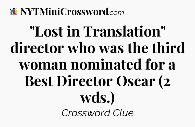 The Answer for “Lost in Translation” director who was the third woman nominated for a Best Director Oscar (2 wds.) Crossword Clue is: