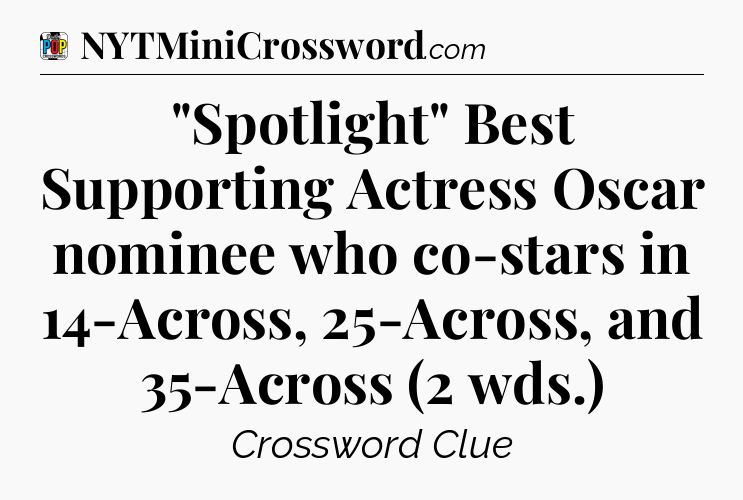 The clue “”Spotlight” Best Supporting Actress Oscar nominee who co-stars in 14-Across, 25-Across, and 35-Across (2 wds.)” most recently appeared in a Daily Pop Crossword on November 22, 2024.
