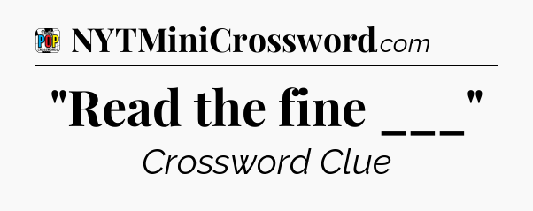 Many people are looking for this kind of information, because they want to pass each level. Especially for this we guessed Daily Pop Crossword “Read the fine ___” answers for you and placed on this website.