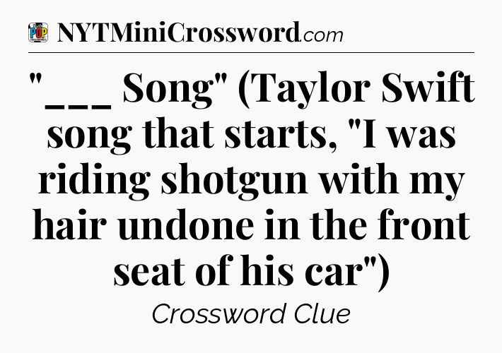 The clue “”___ Song” (Taylor Swift song that starts, “I was riding shotgun with my hair undone in the front seat of his car”)” most recently appeared in a Daily Pop Crossword on November 30, 2024.