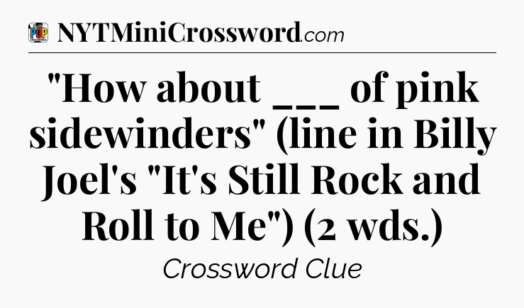 Many people are looking for this kind of information, because they want to pass each level. Especially for this we guessed Daily Pop Crossword “How about ___ of pink sidewinders” (line in Billy Joel’s “It’s Still Rock and Roll to Me”) (2 wds.) answers for you and placed on this website.