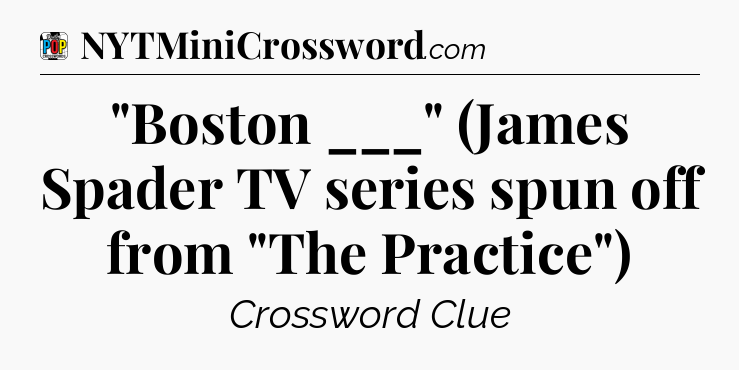 The Answer for “Boston ___” (James Spader TV series spun off from “The Practice”) Crossword Clue is: