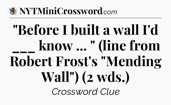 The Answer for “Before I built a wall I’d ___ know … ” (line from Robert Frost’s “Mending Wall”) (2 wds.) Crossword Clue is: