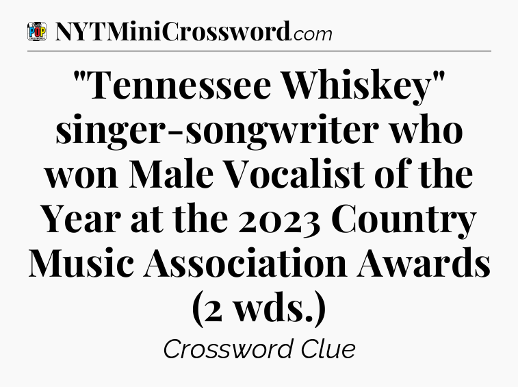 The clue “”Tennessee Whiskey” singer-songwriter who won Male Vocalist of the Year at the 2023 Country Music Association Awards (2 wds.)” most recently appeared in a Daily Pop Crossword on December 26, 2023.