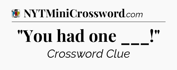 You’ll be glad to know, that your search for tips for Daily Pop Crossword game is ending right on this page. On this page we are posted for you “You had one ___!” Crossword Clue answers, cheats, walkthroughs and solutions. This game was created by a PuzzleNation team that created a lot of great games for Android and iOS.