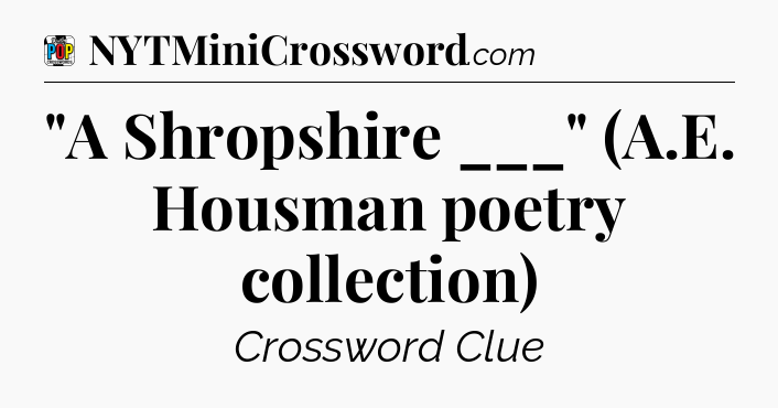 The Answer for “A Shropshire ___” (A.E. Housman poetry collection) Crossword Clue is: