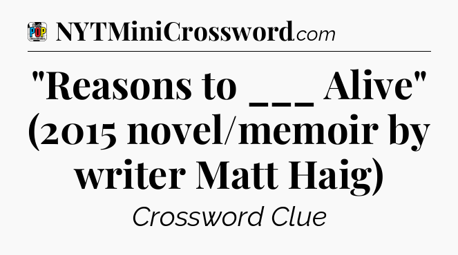 The Answer for “Reasons to ___ Alive” (2015 novel/memoir by writer Matt Haig) Crossword Clue is: