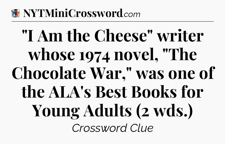 The clue “”I Am the Cheese” writer whose 1974 novel, “The Chocolate War,” was one of the ALA’s Best Books for Young Adults (2 wds.)” most recently appeared in a Daily Pop Crossword on February 11, 2024.