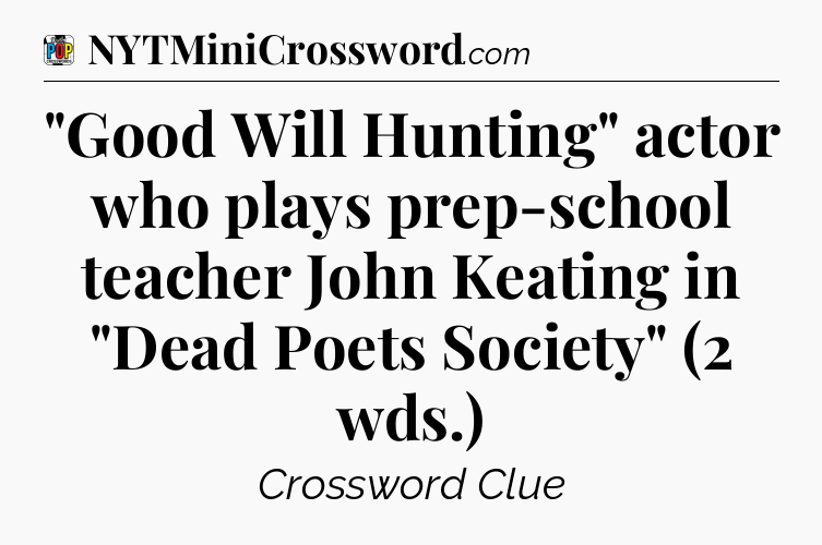 The Answer for “Good Will Hunting” actor who plays prep-school teacher John Keating in “Dead Poets Society” (2 wds.) Crossword Clue is: