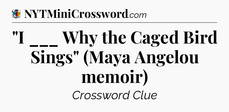 The Answer for “I ___ Why the Caged Bird Sings” (Maya Angelou memoir) Crossword Clue is: