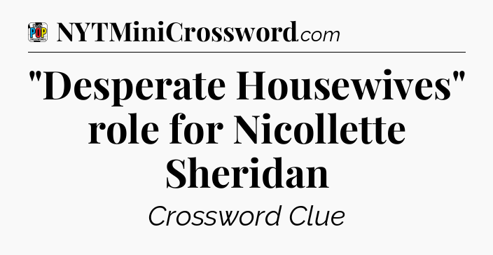 Many people are looking for this kind of information, because they want to pass each level. Especially for this we guessed Daily Pop Crossword “Desperate Housewives” role for Nicollette Sheridan answers for you and placed on this website.