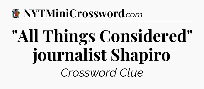 Many people are looking for this kind of information, because they want to pass each level. Especially for this we guessed Daily Pop Crossword “All Things Considered” journalist Shapiro answers for you and placed on this website.