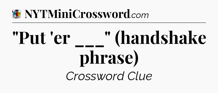 The Answer for “Put ‘er ___” (handshake phrase) Crossword Clue is: