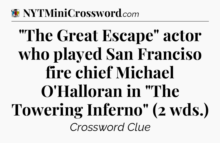 The clue “”The Great Escape” actor who played San Franciso fire chief Michael O’Halloran in “The Towering Inferno” (2 wds.)” most recently appeared in a Daily Pop Crossword on March 14, 2024.