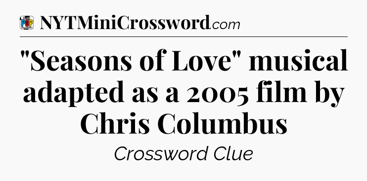 Many people are looking for this kind of information, because they want to pass each level. Especially for this we guessed Daily Pop Crossword “Seasons of Love” musical adapted as a 2005 film by Chris Columbus answers for you and placed on this website.