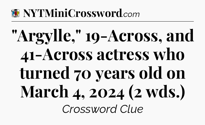 The Answer for “Argylle,” 19-Across, and 41-Across actress who turned 70 years old on March 4, 2024 (2 wds.) Crossword Clue is: