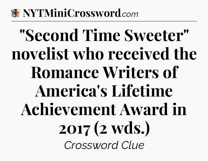 The Answer for “Second Time Sweeter” novelist who received the Romance Writers of America’s Lifetime Achievement Award in 2017 (2 wds.) Crossword Clue is: