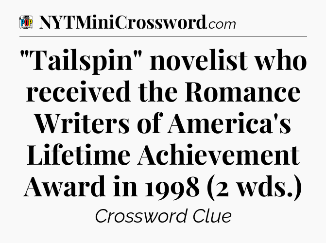 The Answer for “Tailspin” novelist who received the Romance Writers of America’s Lifetime Achievement Award in 1998 (2 wds.) Crossword Clue is:
