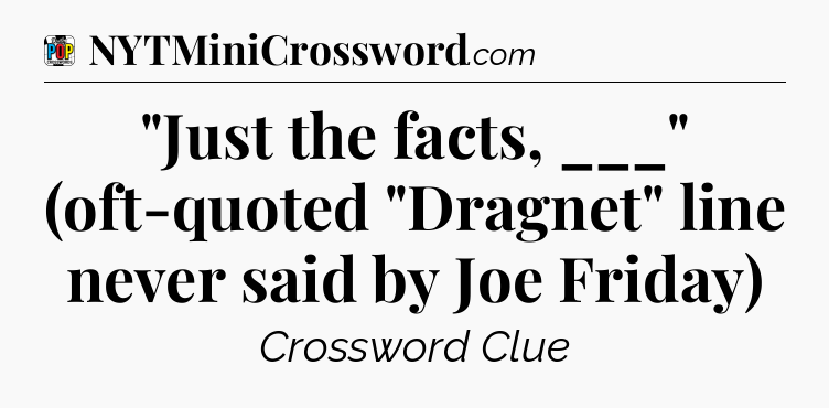 The Answer for “Just the facts, ___” (oft-quoted “Dragnet” line never said by Joe Friday) Crossword Clue is: